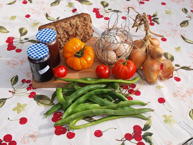 • frische Eier, selbstgebackenes Brot